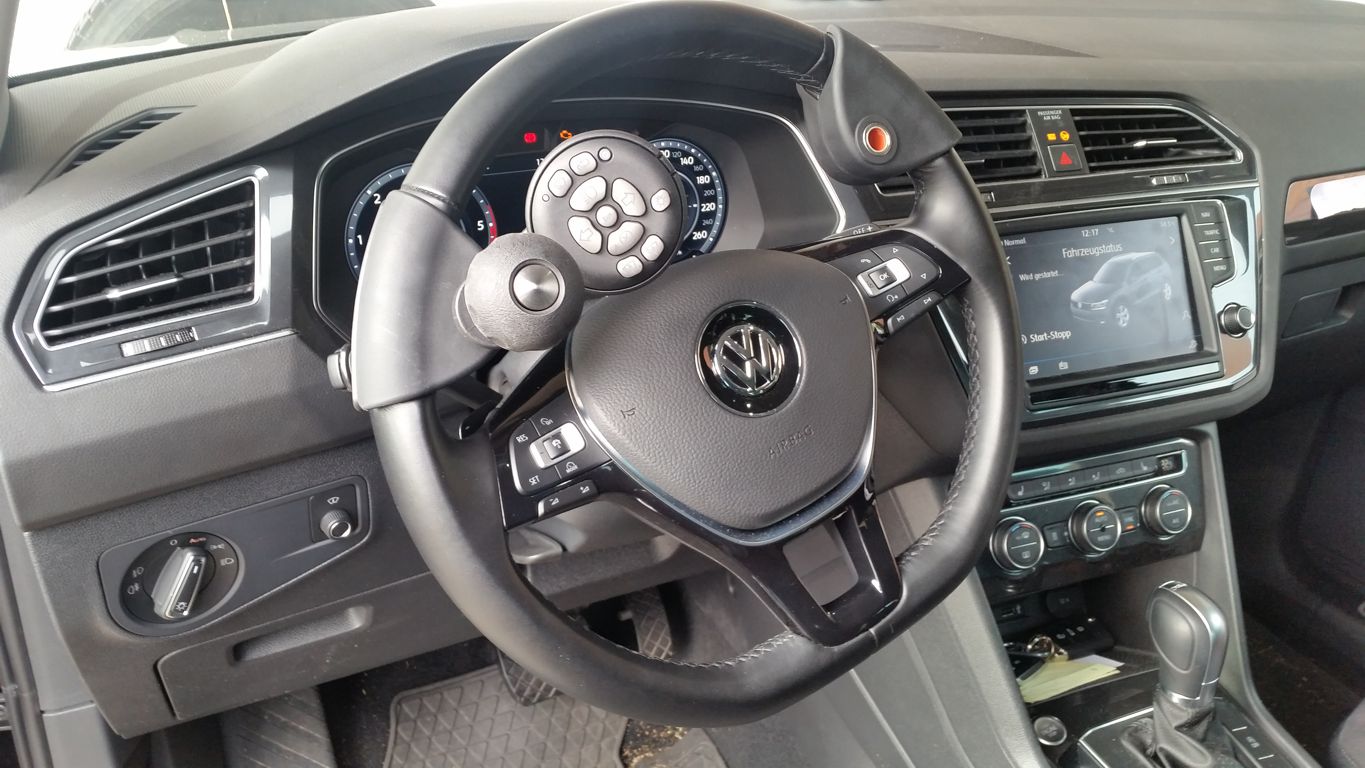Unser VW Tiguan mit der Multifunktionskurbel für die Bedienung von 14 Funktionen mit nur einer Hand.